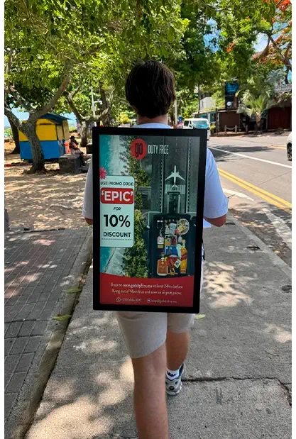 Es una herramienta de publicidad móvil y digital, ideal para campañas de marketing en eventos, ferias, centros comerciales o zonas de alto tráfico peatonal.